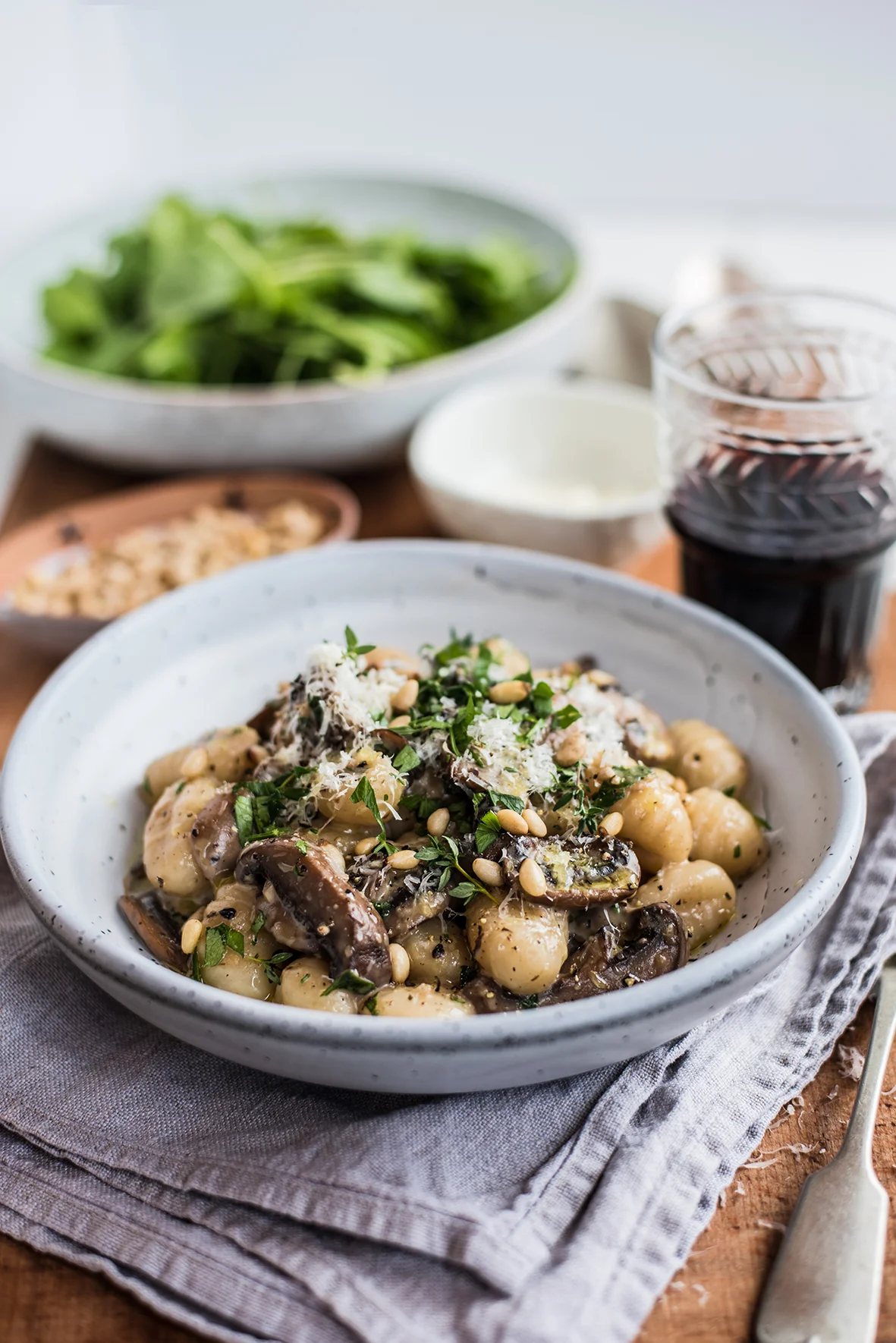 A delicious and comforting weeknight meal. A creamy garlic and mushroom sauce with fresh herbs and plump pillowy gnocchi. Perfect paired with a rocket salad and a simple vinaigrette.